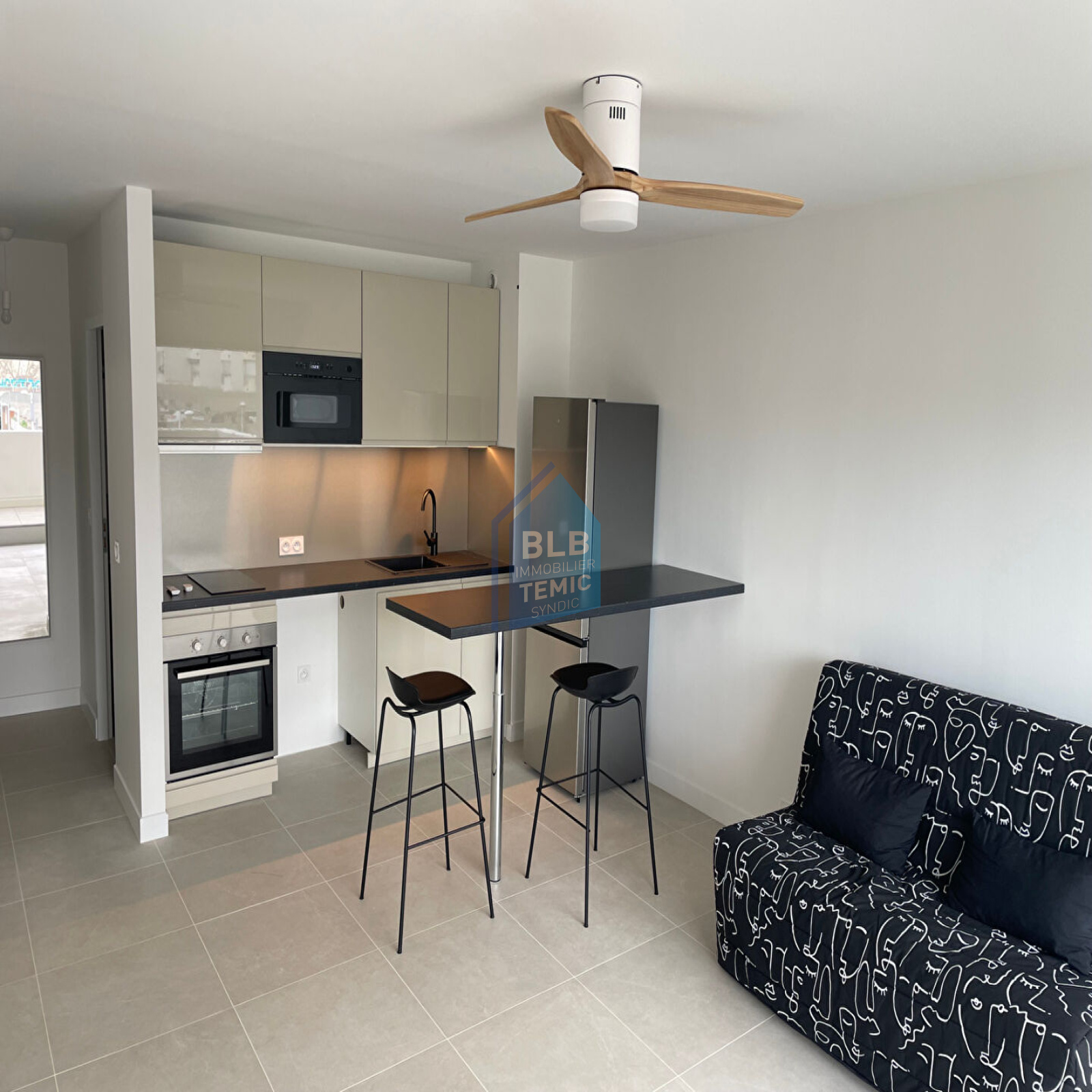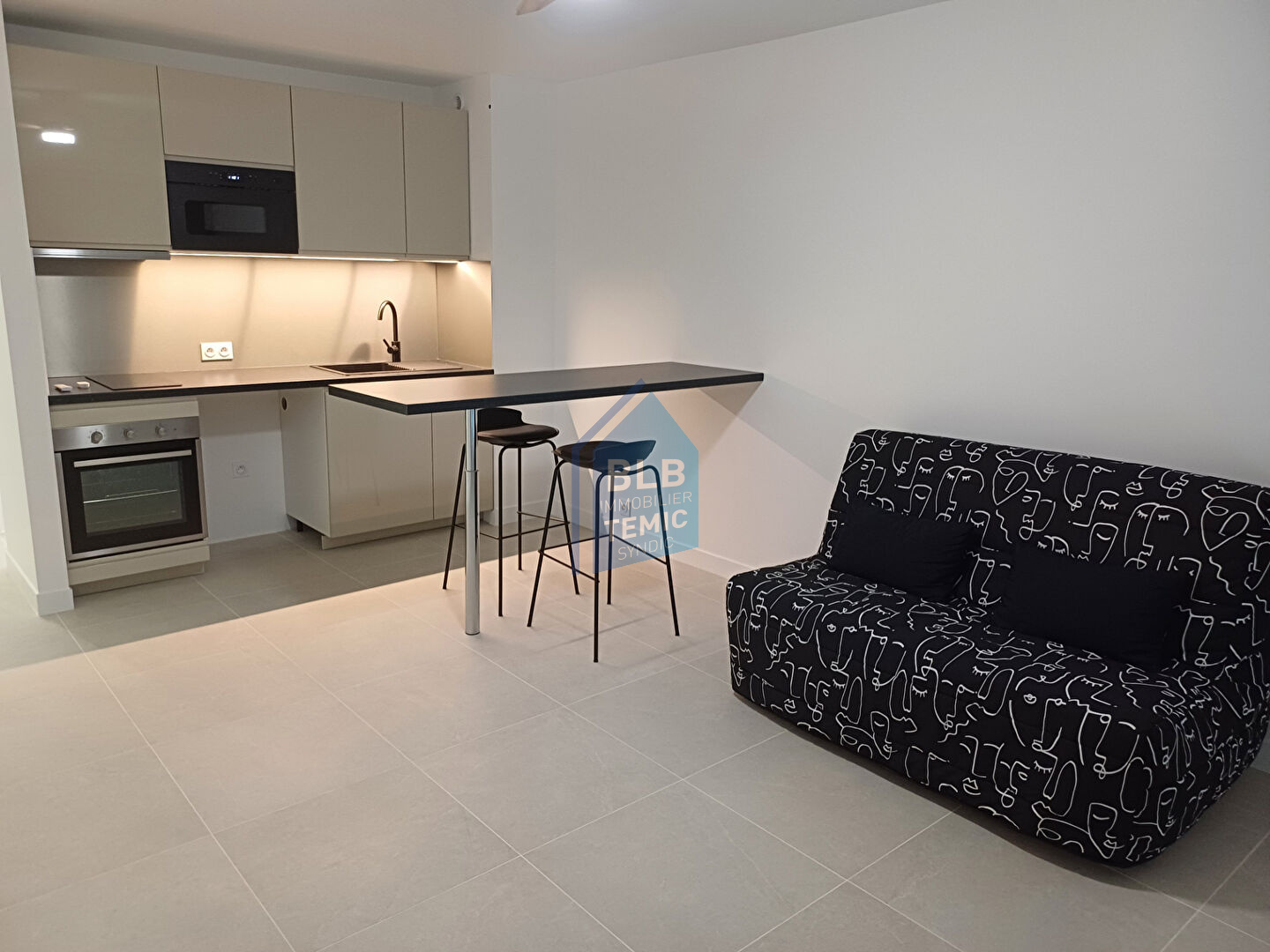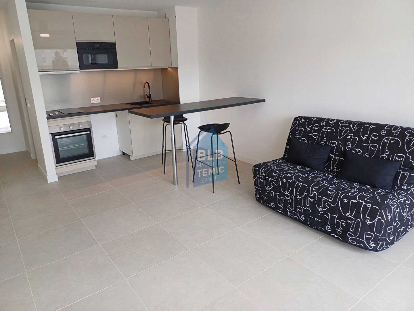 Magnifique studio de standing situé au 1er étage avec ascenseur dans une résidence sécurisée, proche de toutes commodités. Très lumineux, il comprend une entrée avec placard, une salle d’eau neuve avec WC, une pièce de vie avec canapé BZ , une cuisine neuve équipée et aménagée, ainsi qu’une grande terrasse.