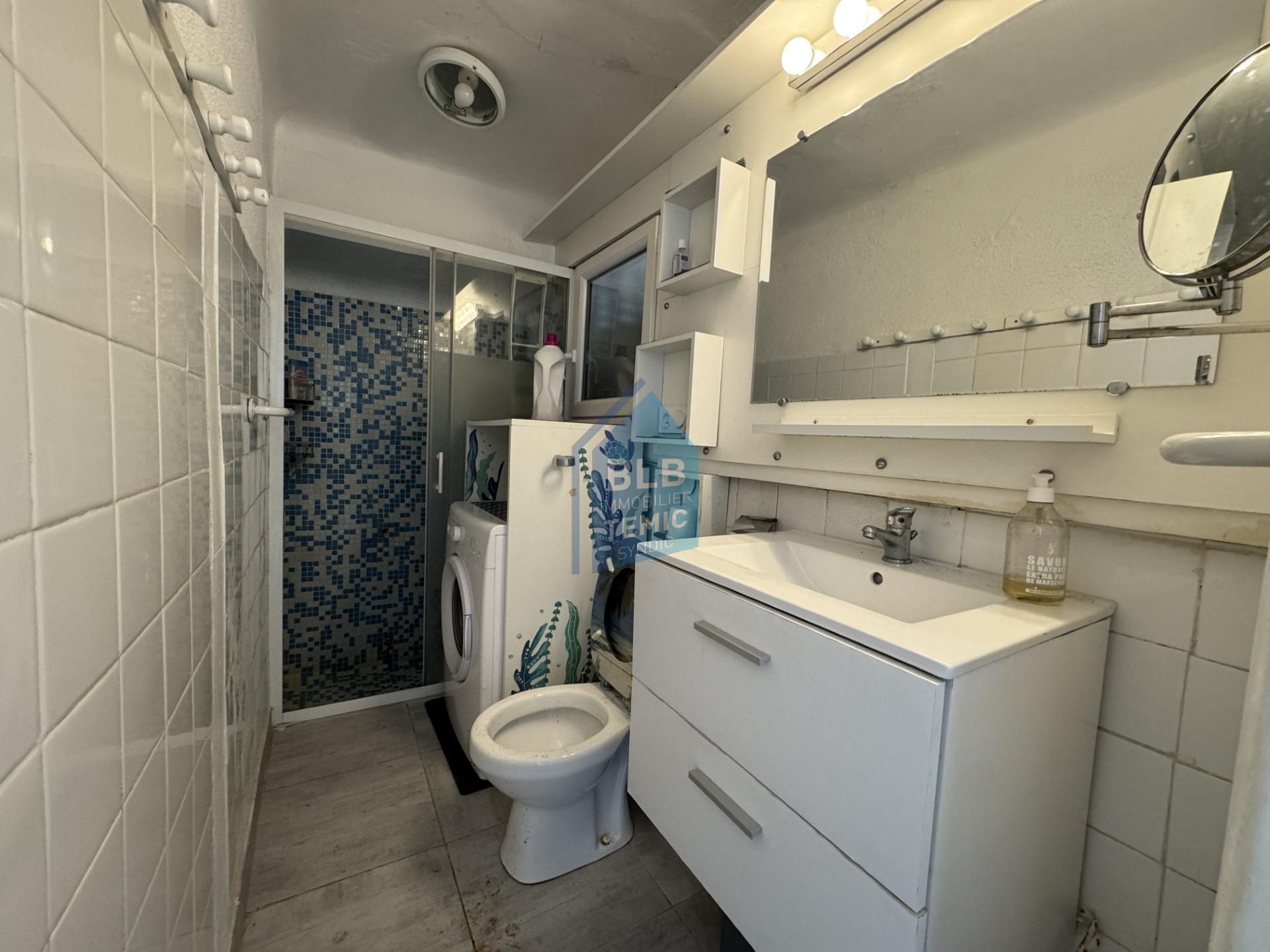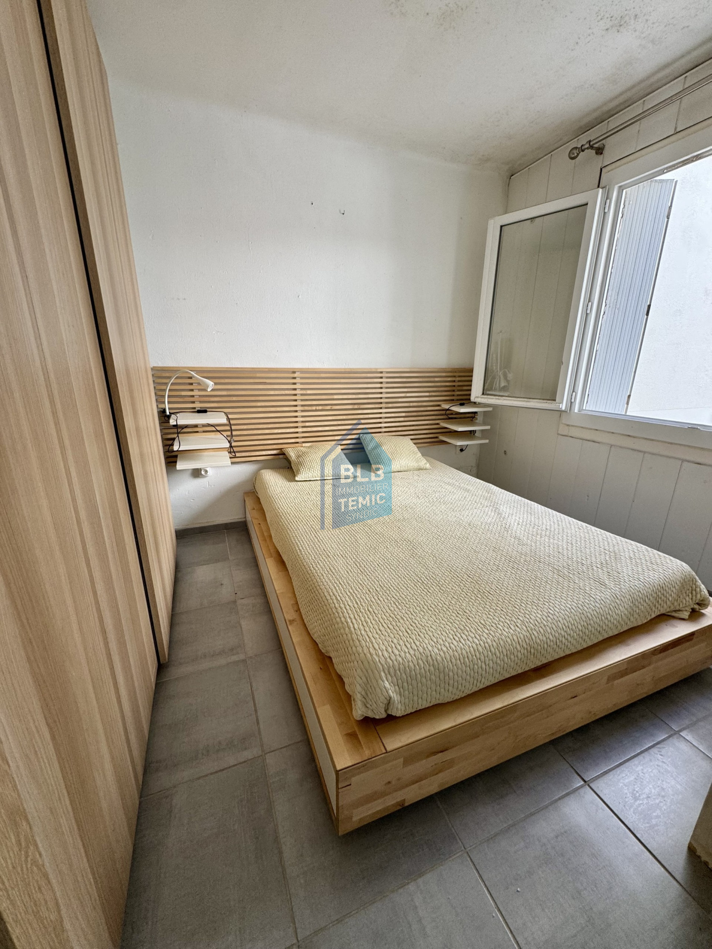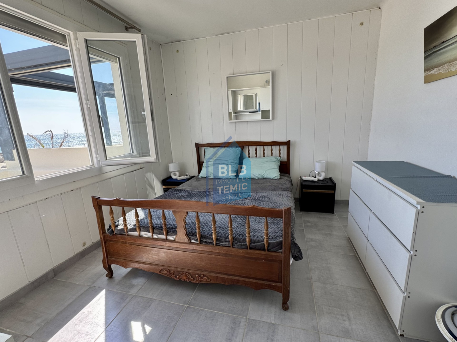 T 3 d'une surface environ 39 m² , composé d'une salle d'eau avec WC , une cuisine équipée , 1 chambre avec une vue mer et une seconde chambre donnant sur la cour intérieure , l'appartement situé